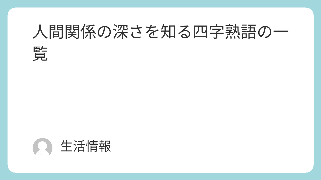 この一覧では、人間関係を深めるためのヒントとなる四字熟語をテーマ別に紹介する。