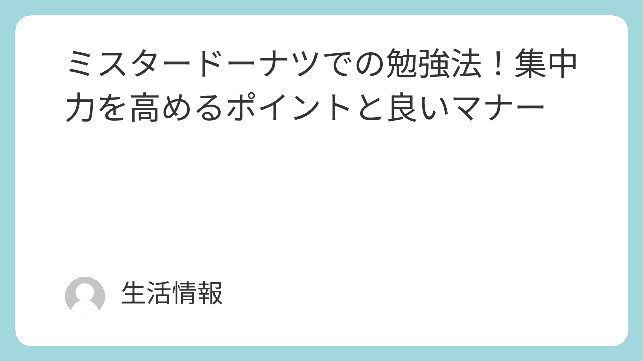 今回はミスドで集中して効率よく勉強するコツと、他のお客さんとも快適に過ごすためのマナーについて詳しくご紹介します。