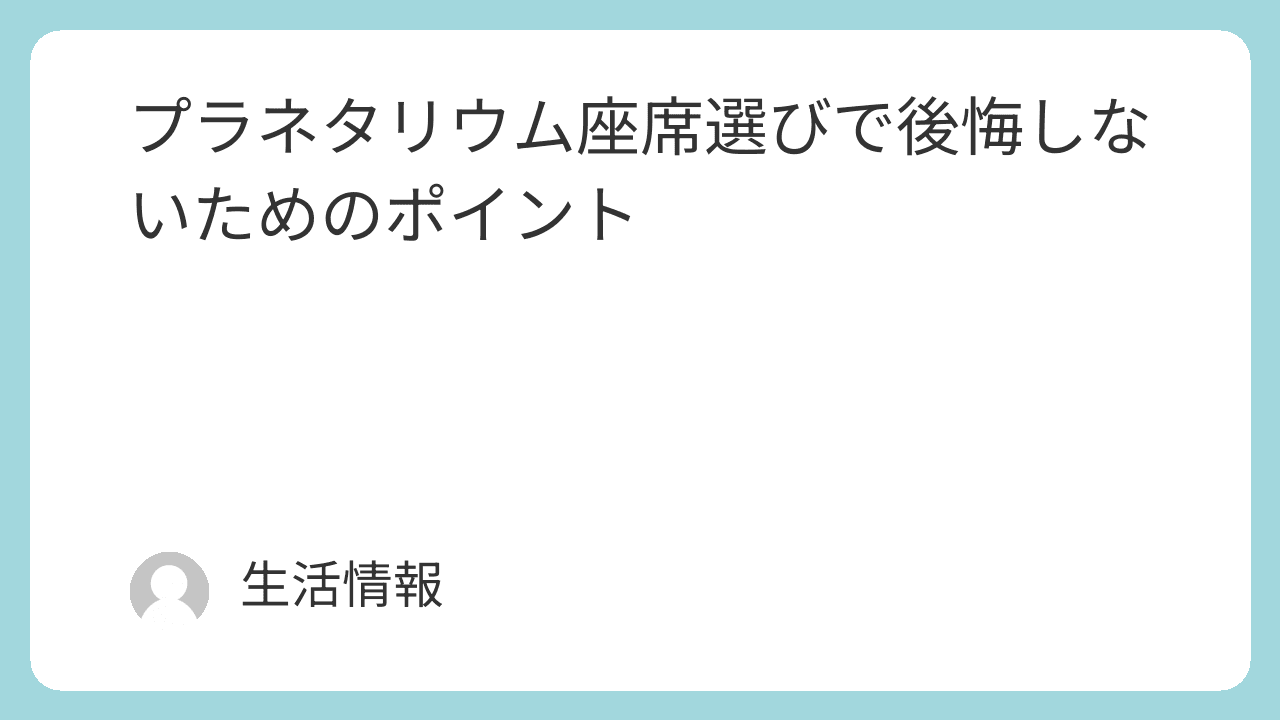 この記事では、プラネタリウムで最高の時間を過ごすために、どの席を選ぶべきかを詳しく解説します。