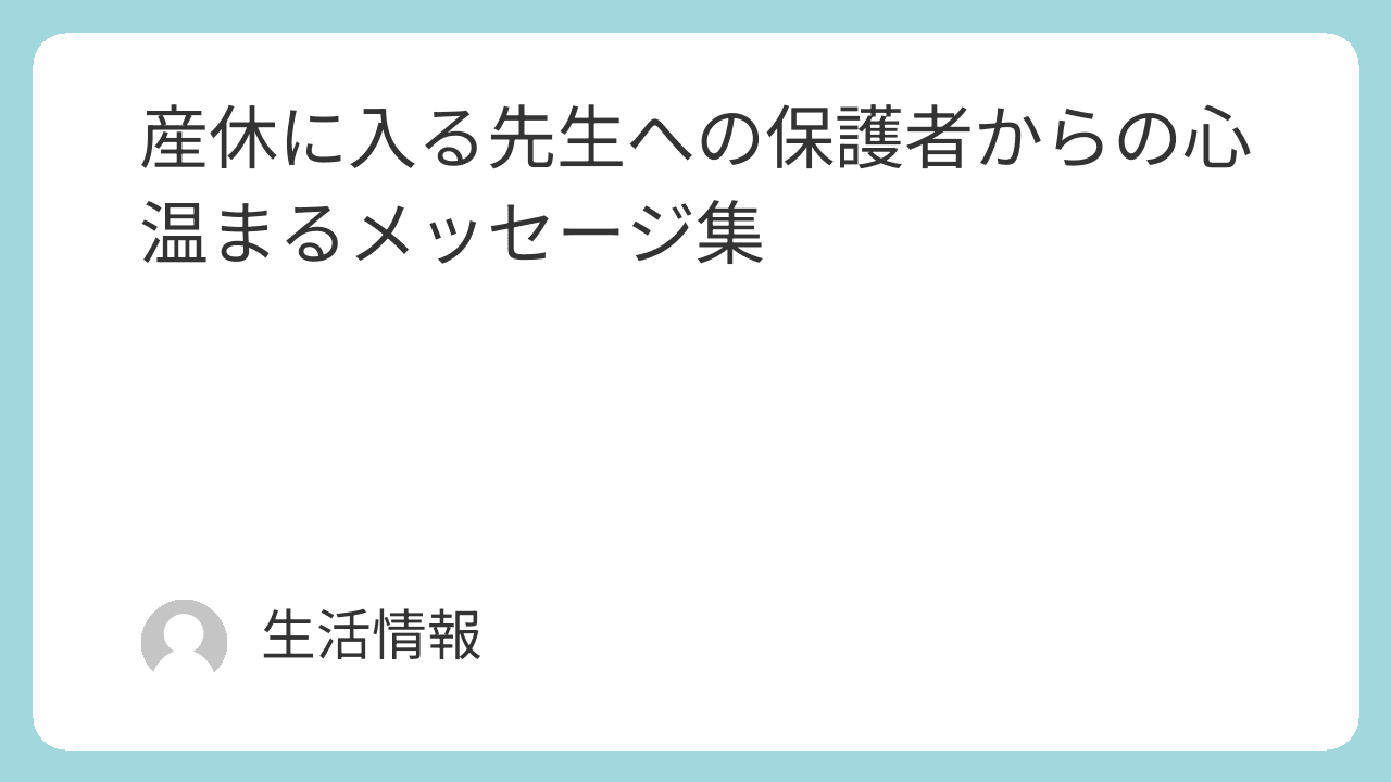この記事では、産休に入る先生に向けた保護者からのメッセージの例文や書き方のポイントを紹介します。